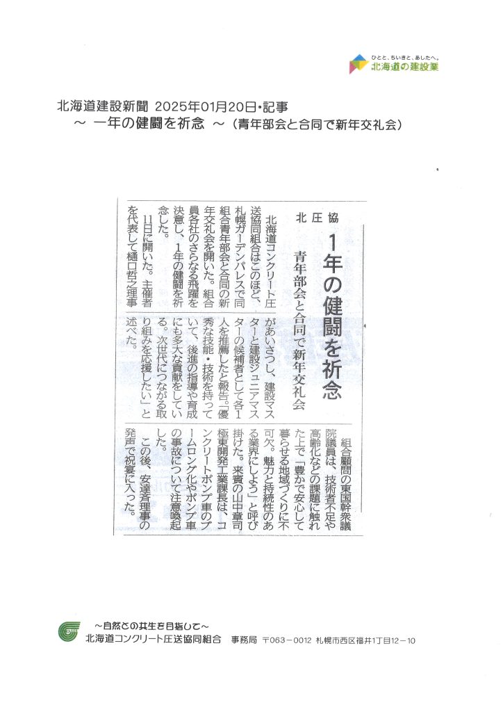 北海道建設新聞 2025年01月20日・記事~ 一年の健闘を祈念~(青年部会と合同で新年交礼会)
