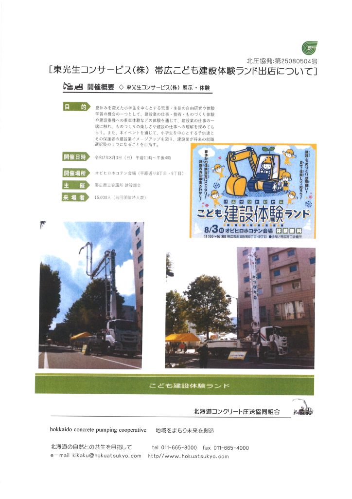 東光生コンサービス(株)帯広こども建設体験ランド出店
