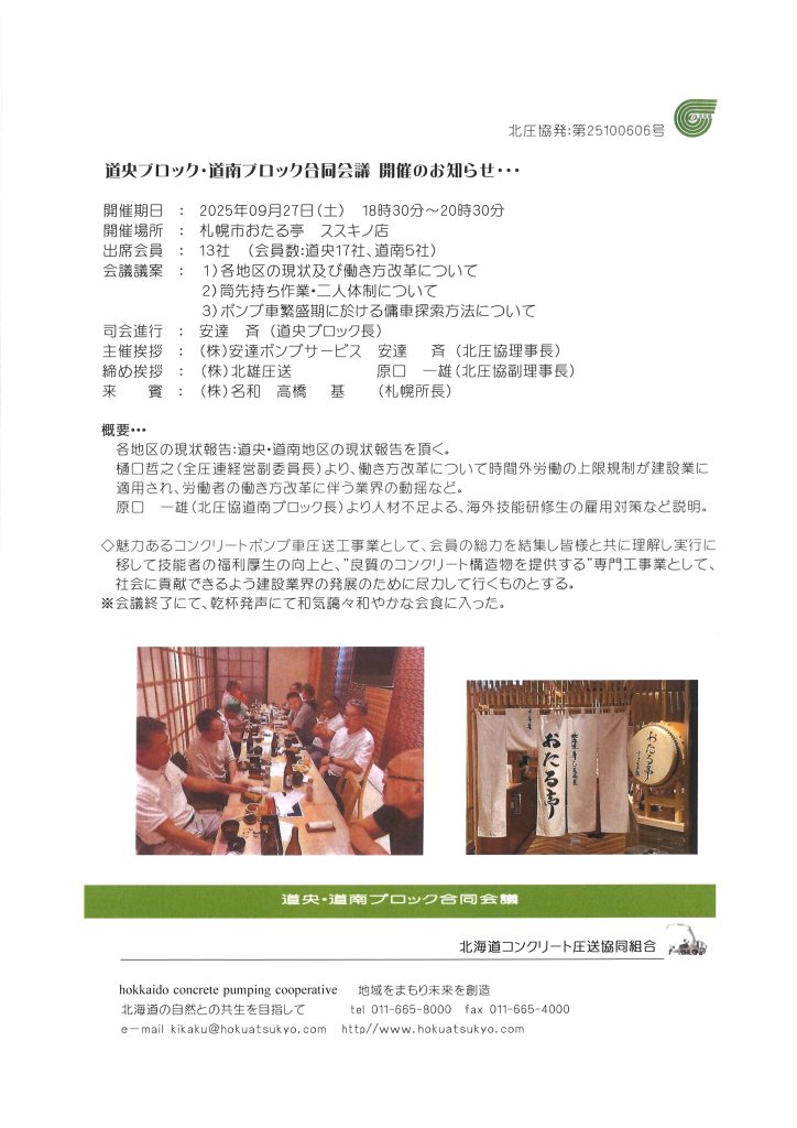道央ブロック・道南ブロック合同会議 開催のお知らせ・・・